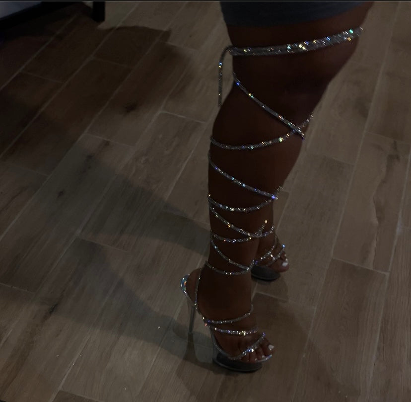 Are you ready to snap necks while you walk? Then this is the perfect shoe for you! Our "Crystal Lace Up Heel" makes the perfect match with any of our signature or custom pieces!